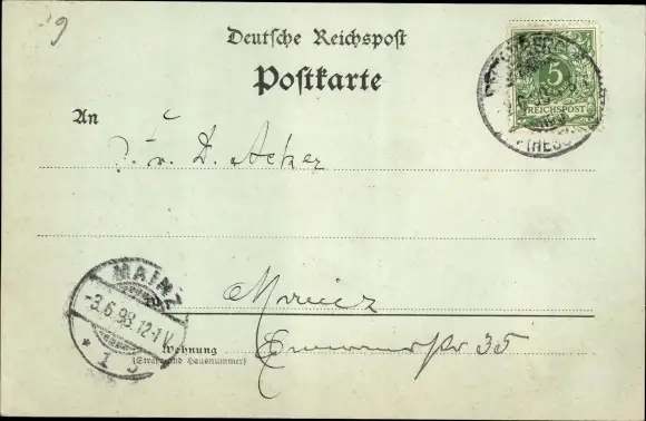 gelaufen 1898, Eckknick links oben, sonst guter Zustand