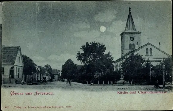 Mondschein Ak Friesack in der Mark, Kirche, Charlottenstraße