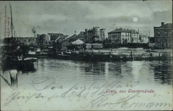 Mondschein Ak Geestemünde Bremerhaven, Stadt bei Nacht
