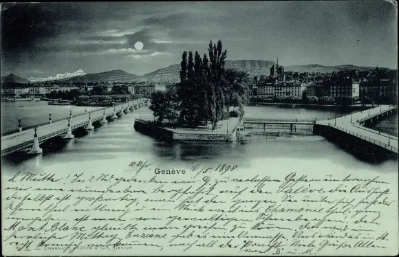 Mondschein Ak Genève Genf Schweiz, Panorama