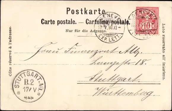 Zustand, siehe Scan, gelaufen, 1898 - ca 14 cm X 9 cm