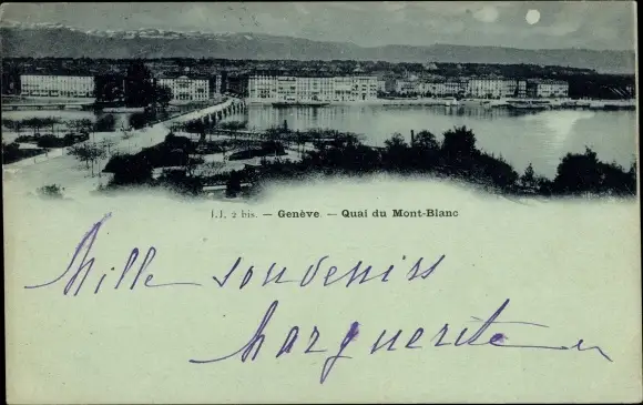 Mondschein Ak Genf Genf Schweiz, Quai du Mont Blanc