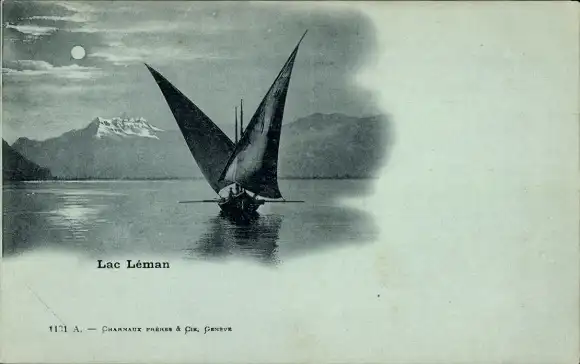 Mondschein Ak Genf, vue générale d'une Barque du Lac Léman