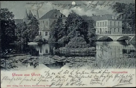 Mondschein Ak Goch am Niederrhein, Nierspartie