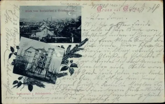 Mondschein Ak Gotha im Thüringer Becken, Blick vom Restaurant zum Friedenstein