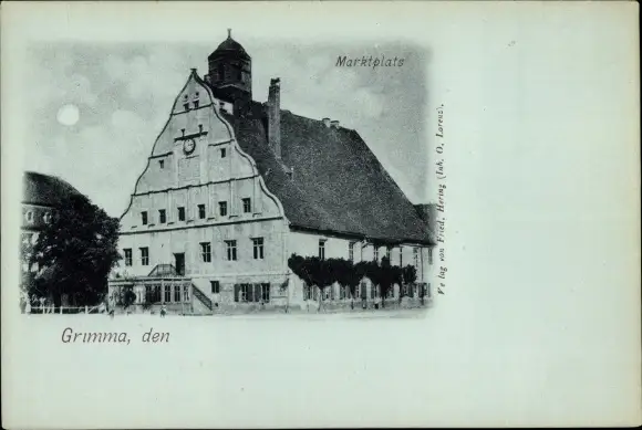 Mondschein Ak Grimma in Sachsen, Partie am Marktplatz