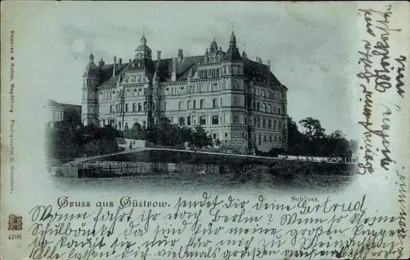 Mondschein Ak Güstrow in Mecklenburg, Schloss