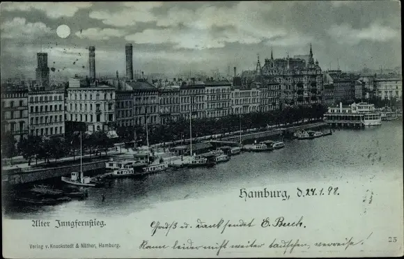 Mondschein Ak Hamburg, Jungfernstieg bei Nacht