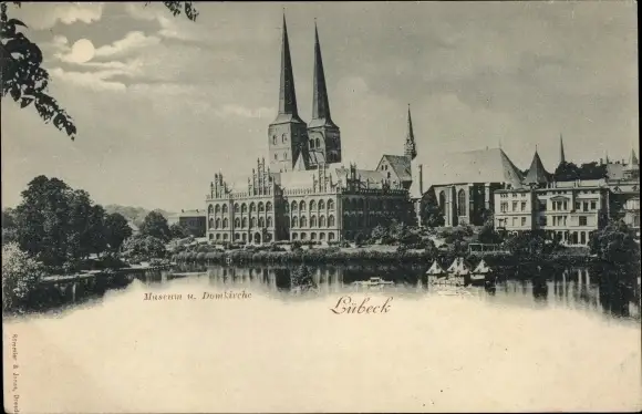 Mondschein Ak Hansestadt Lübeck, Museum, Domkirche