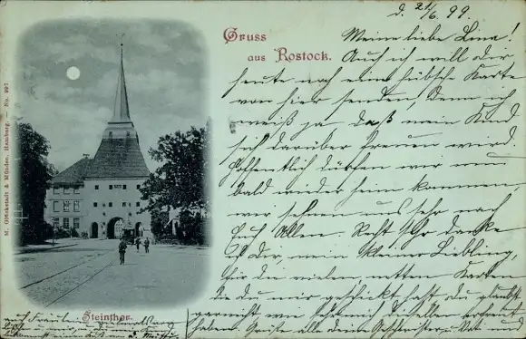 Mondschein Ak Hansestadt Rostock, Steintor