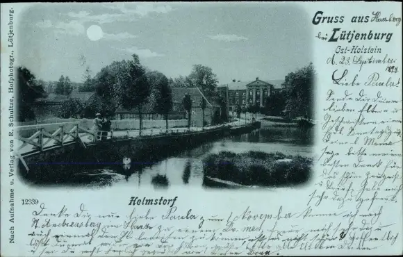 Mondschein Ak Helmstorf bei Lütjenburg in Holstein, Ortsansicht