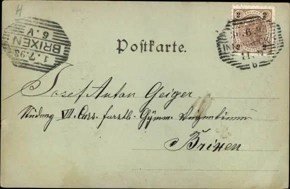 Zustand, siehe Scan, gelaufen, 1898 - ca 14 cm X 9 cm