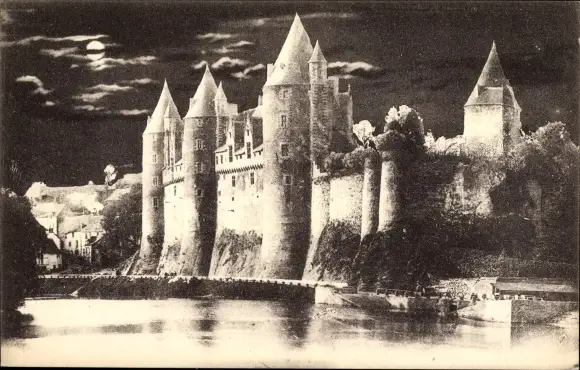 Mondschein Ak Josselin Morbihan, Schloss