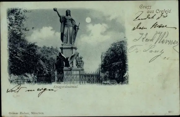 Mondschein Ak Krefeld am Niederrhein, Kriegerdenkmal
