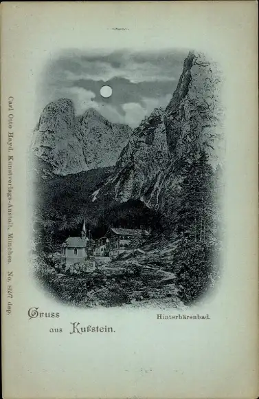 Mondschein Ak Kufstein in Tirol, Hinterbärenbad