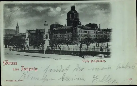 Mondschein Ak Leipzig in Sachsen, Schloss Pleißenburg