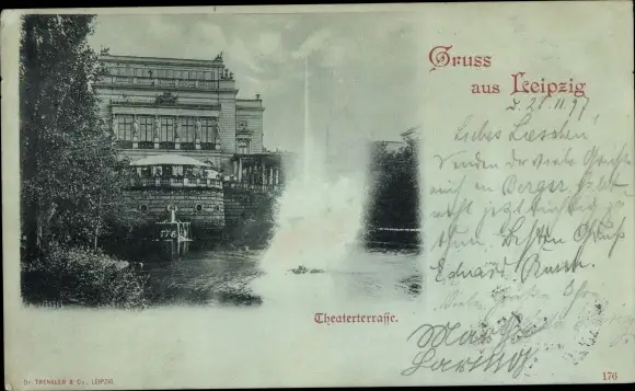 Mondschein Ak Leipzig in Sachsen, Theaterterrasse