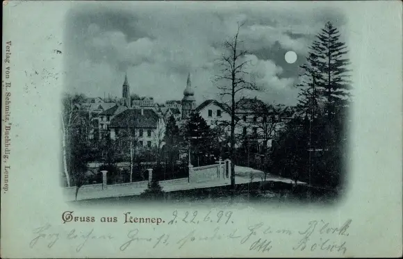 Mondschein Ak Lennep Remscheid im Bergischen Land, Stadtansicht, Brücke