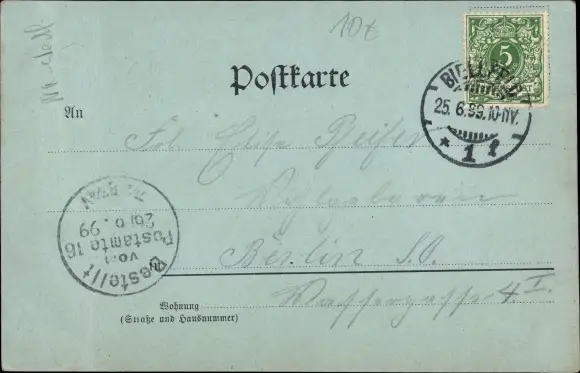 Zustand, siehe Scan, gelaufen, 1899 - ca 14 cm X 9 cm