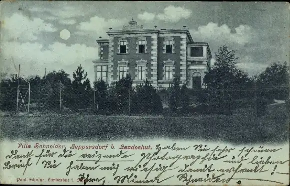 Mondschein Ak Leppersdorf Schlesien, Villa Schneider