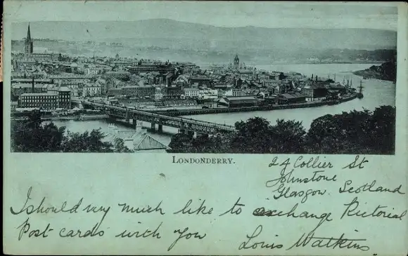 Mondschein Ak Londonderry Derry Nordirland, Gesamtansicht