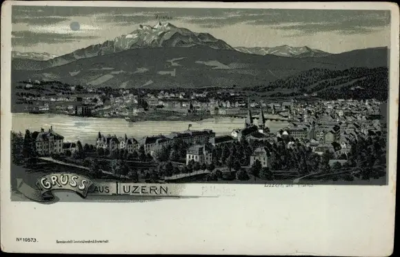 Mondschein Ak Lucerne Luzern Stadt Schweiz, Panorama