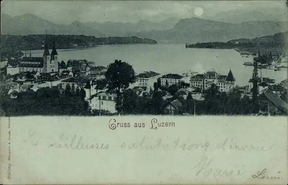 Mondschein Ak Luzern Stadt Schweiz, Ort bei Nacht