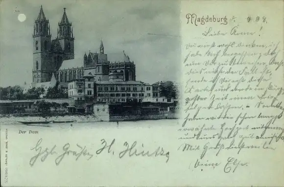 Mondschein Ak Magdeburg an der Elbe, Der Dom