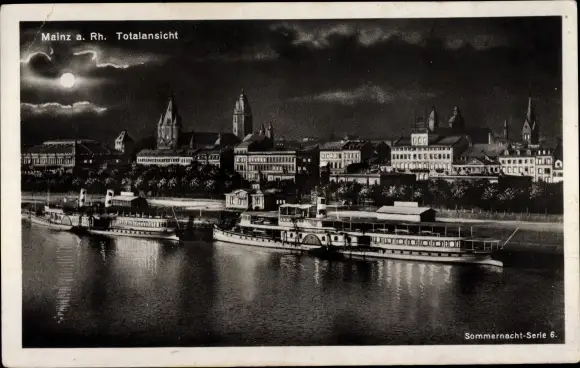 Mondschein Ak Mainz am Rhein, Totalansicht