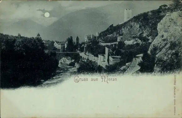 Mondschein Ak Meran Merano Südtirol, Panorama