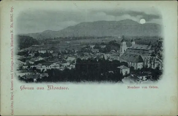 Mondschein Ak Mondsee Oberösterreich, Gesamtansicht von Osten