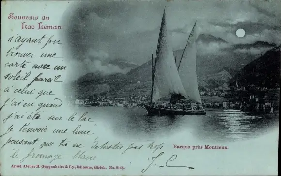 Mondschein Ak Montreux Kanton Waadt Schweiz, Barque