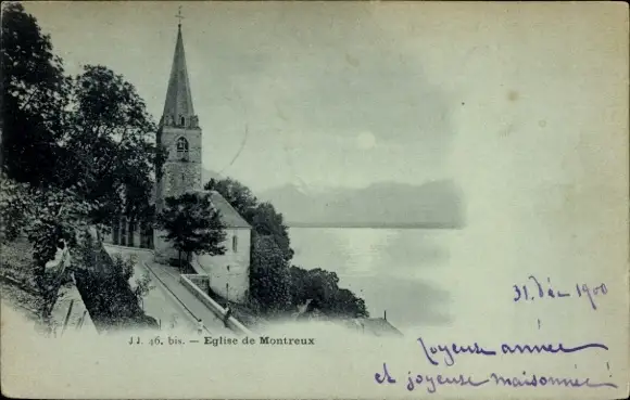 Mondschein Ak Montreux Kanton Waadt Schweiz, Kirche