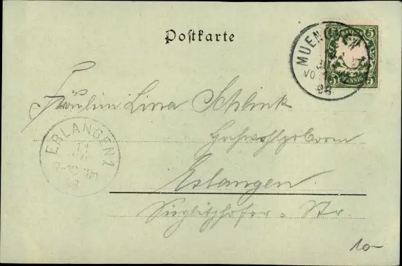 gelaufen 1898, beschnitten, leicht fleckig, sonst guter Zustand