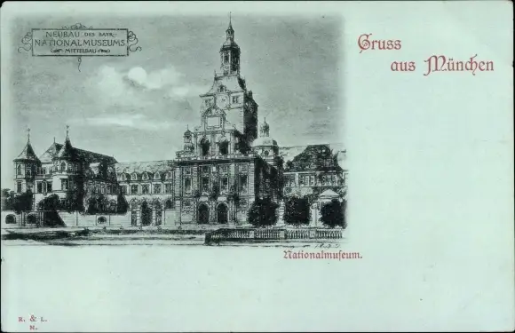 Mondschein Ak München Bayern, Nationalmuseum, Neubau Mittelbau