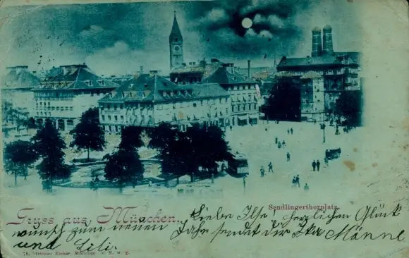 Mondschein Ak München Bayern, Sendlingertorplatz