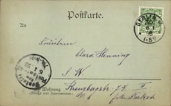 Zustand, siehe Scan, gelaufen, 1898 - ca 14 cm X 9 cm