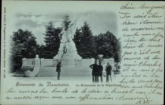 Mondschein Ak Neuchâtel Kanton Neuenburg, Le Monument de la Republique