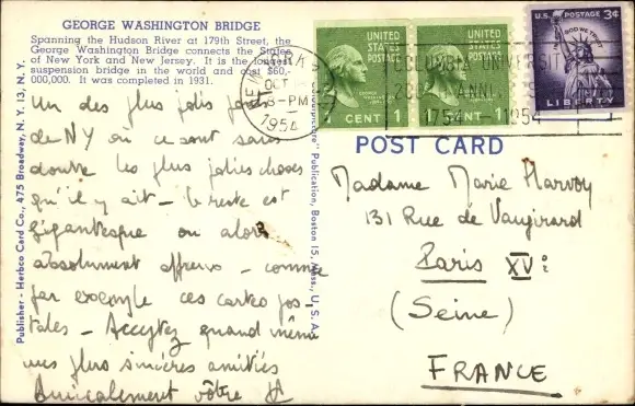 Zustand, siehe Scan, gelaufen, 1954 - ca 14 cm X 9 cm