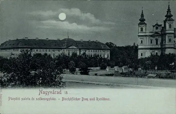 Mondschein Ak Oradea Großwardein Nagyvárad Rumänien, Bischöflicher Dom, Residenz