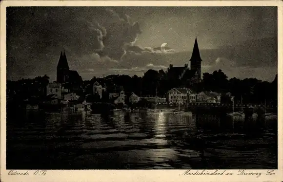 Mondschein Ak Ostróda Osterode Ostpreußen, Drewenz-See