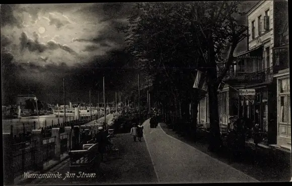 Mondschein Ak Ostseebad Warnemünde Rostock, Am Strom