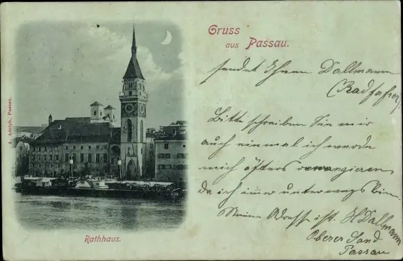 Mondschein Ak Passau in Niederbayern, Rathaus bei Nacht