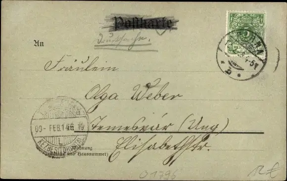 Zustand, siehe Scan, gelaufen, 1909 - ca 14 cm X 9 cm