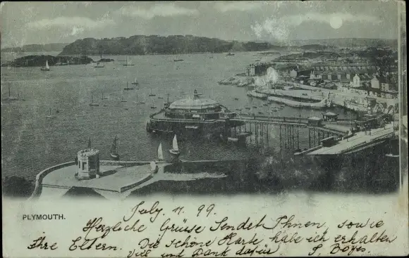 Mondschein Ak Plymouth Devon England, Harbour