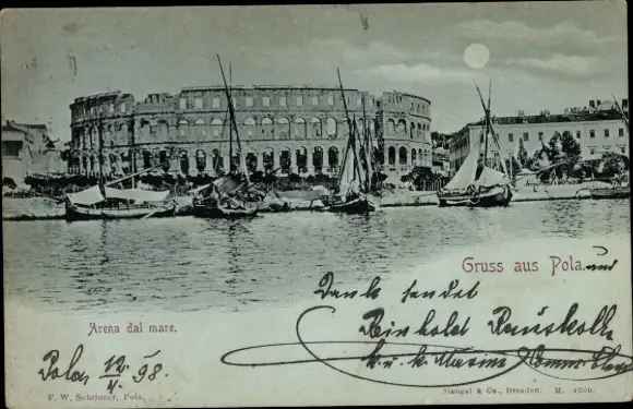 Mondschein Ak Pola Pula Kroatien, Arena dal Mare