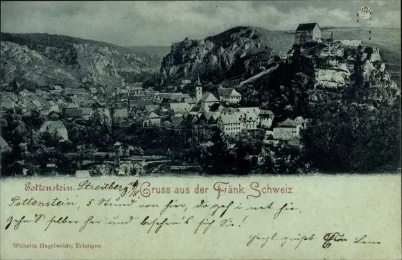 Mondschein Ak Pottenstein in Oberfranken, Panorama