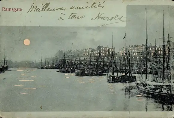 Mondschein Ak Ramsgate Kent England, Teilansicht, Boote