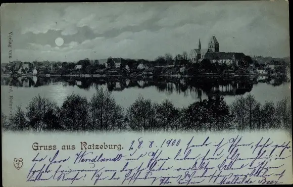 Mondschein Ak Ratzeburg in Schleswig Holstein, Panorama bei Nacht