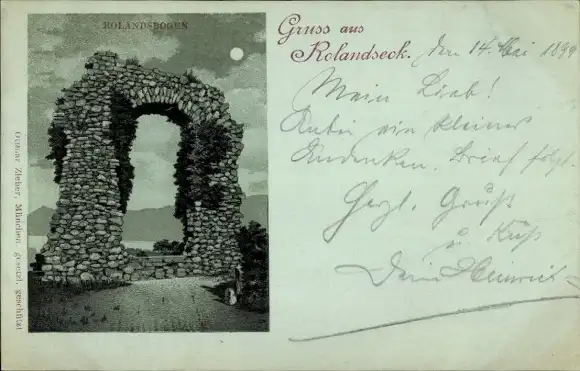 Mondschein Ak Rolandseck Remagen am Rhein, Rolandsbogen